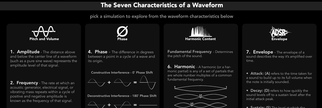 A software environment designed to aid with learning the fundamental concepts of Waveform Characteristics as it relates to audio.